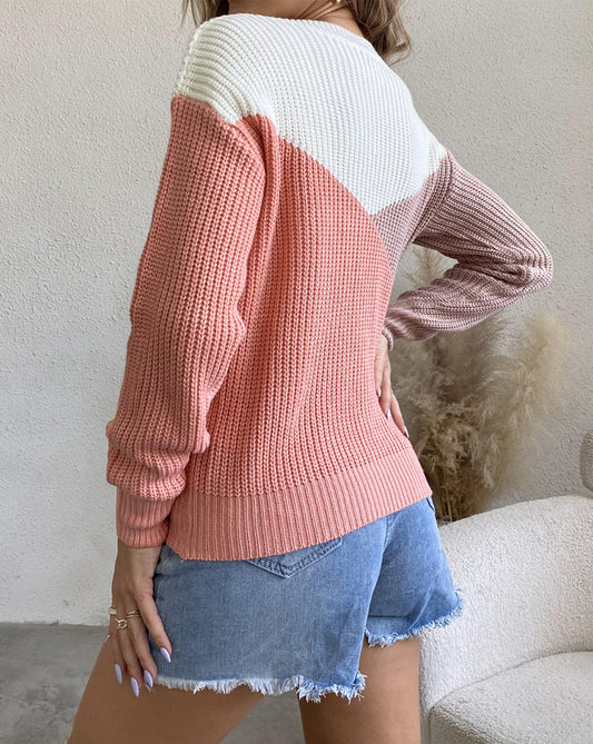 Long Sleeves Color Block Drop Shoulders Knit Sweater