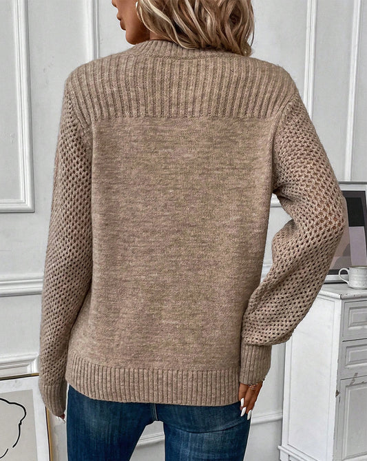 Round Neck Solid Ribbed Knit Pullover Sweater