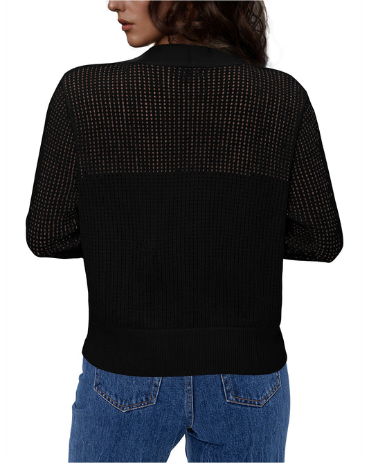 TINYA Women's Solid Cropped 3/4 Sleeve Open Front Cardigan Sweater - Lightweight Knit Layering Top for Spring/Summer/Autumn, S-XL