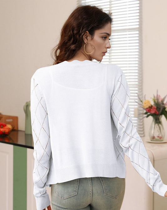 Ribbed Crochet Knit Open Front Long Sleeve Cardigan