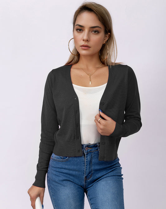 Solid Long Sleeve V-Neck Basic Knit Cardigan Sweater