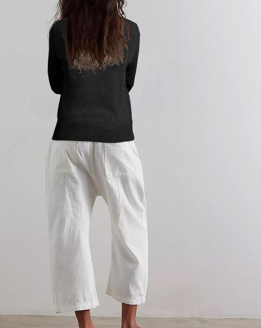 Crew Neck Drop Shoulder Slit Hem Pullover Sweaters